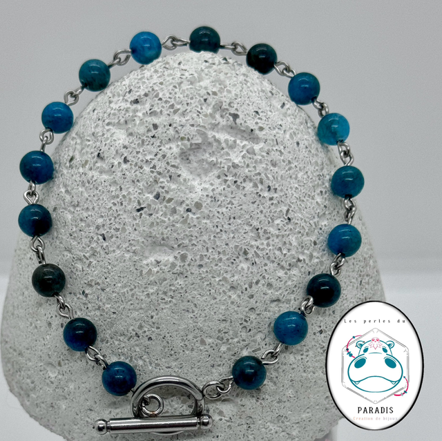 Bracelet en apatite bleu de 6mm sur fil d’acier inoxydable